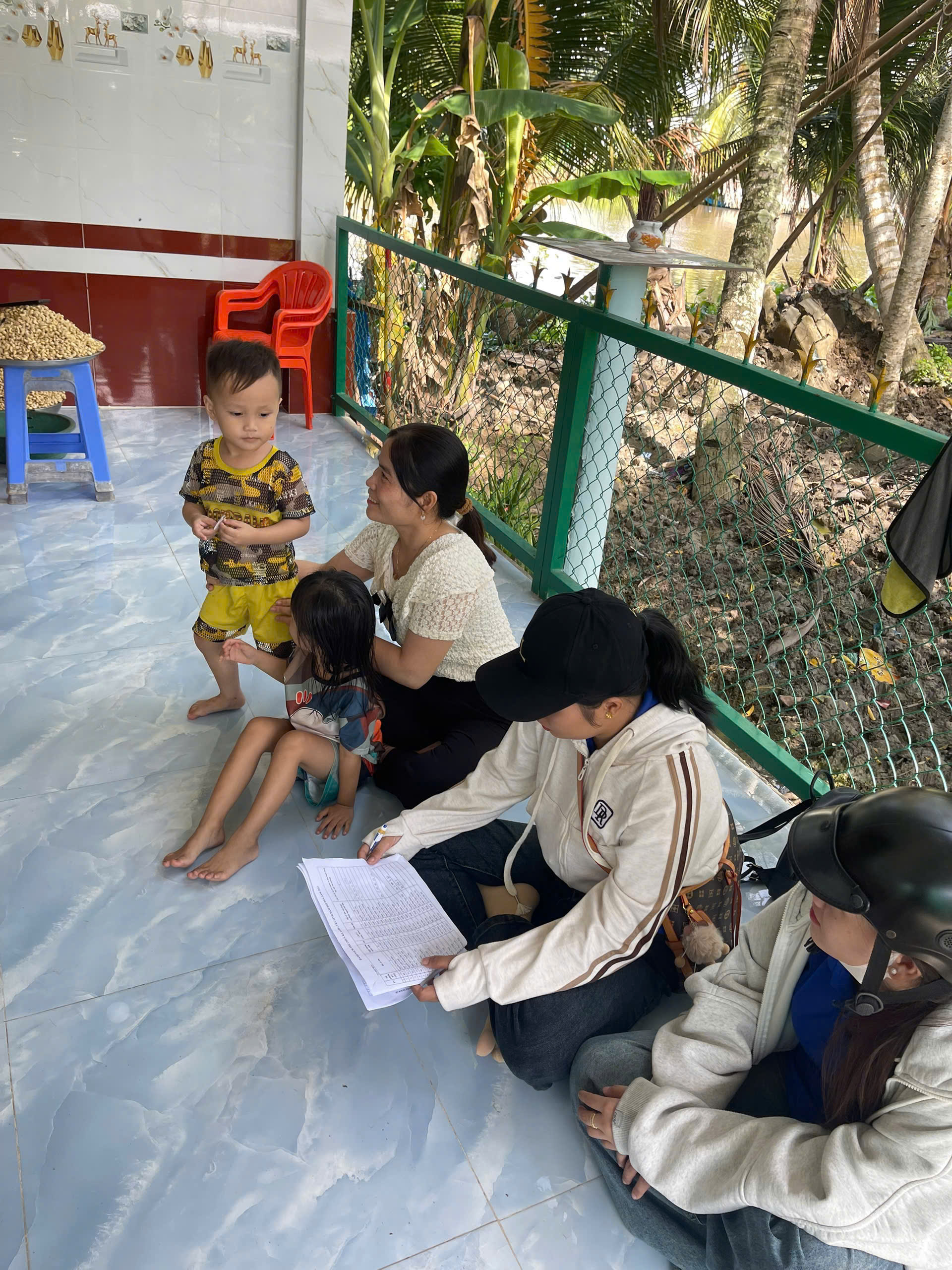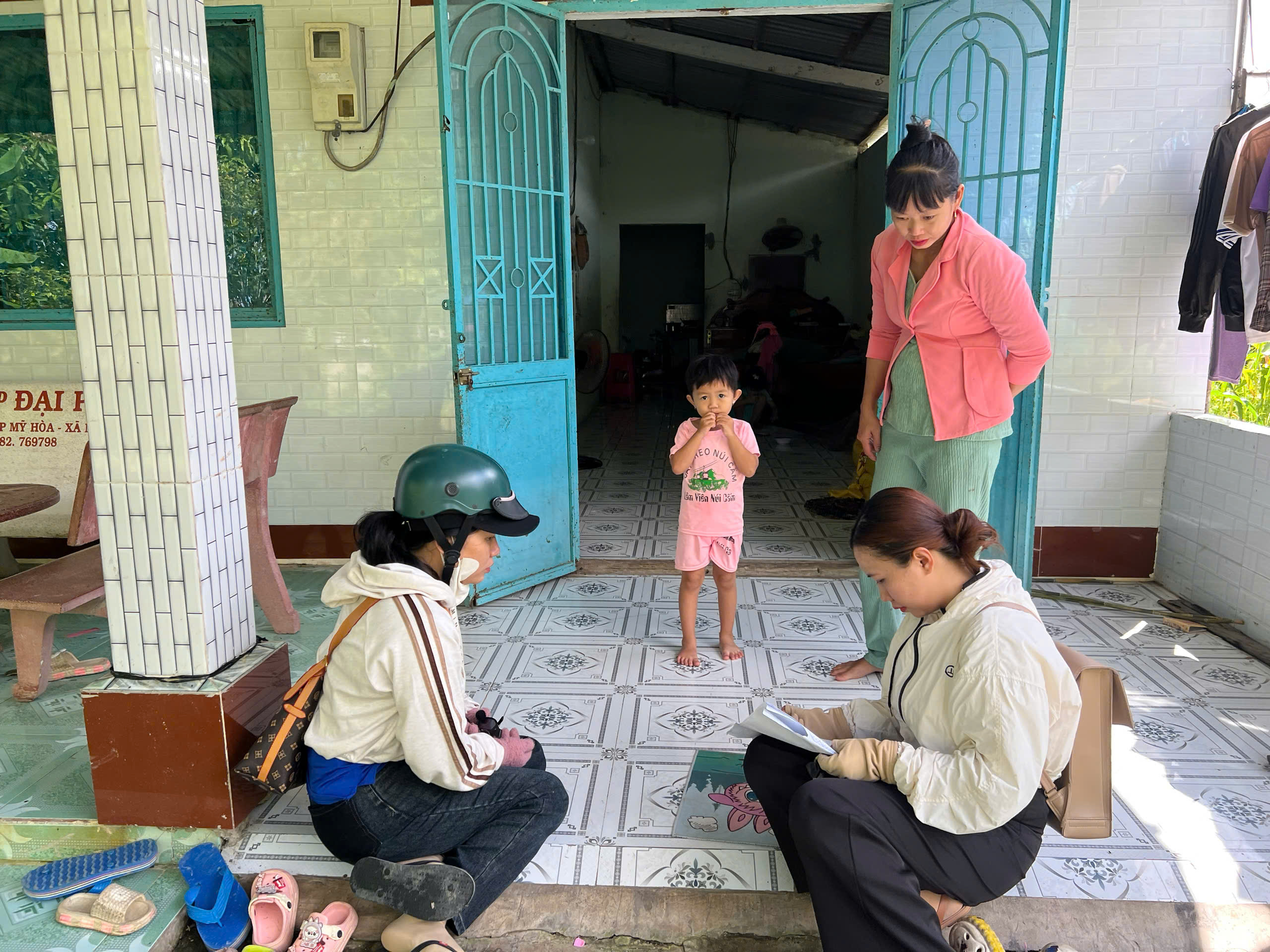 Đến trường là bước ngoặt quan trọng của trẻ mầm non, đánh dấu sự chuyển đổi từ vòng tay gia đình sang môi trường mới, nơi trẻ được chăm sóc, giáo dục toàn diện. Đây không chỉ là thử thách với bản thân trẻ mà còn là sự thích nghi của cả gia đình. Với khẩu hiệu “Mỗi ngày đến trường là một ngày vui”, nhà trường mong muốn mang đến cho trẻ những trải nghiệm hạnh phúc, an toàn và bổ ích. Trước đó, ngày 18/9/2025, nhà trường đã phân công giáo viên xuống từng ấp để điều tra và vận động trẻ ra lớp. Mỗi giáo viên điều tra trực tiếp đến từng hộ gia đình, gặp gỡ ông bà, cha mẹ nhằm nắm số liệu chính xác và kịp thời tổng hợp danh sách báo cáo về trên.