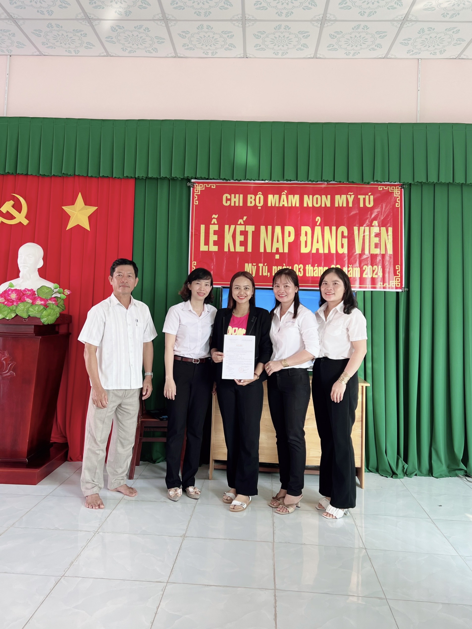 Sáng, ngày 06/02/2024 Chi bộ Trường mầm non Mỹ Tú tổ chức Lễ kết nạp đảng viên cho quần chúng Lý Tú Ân