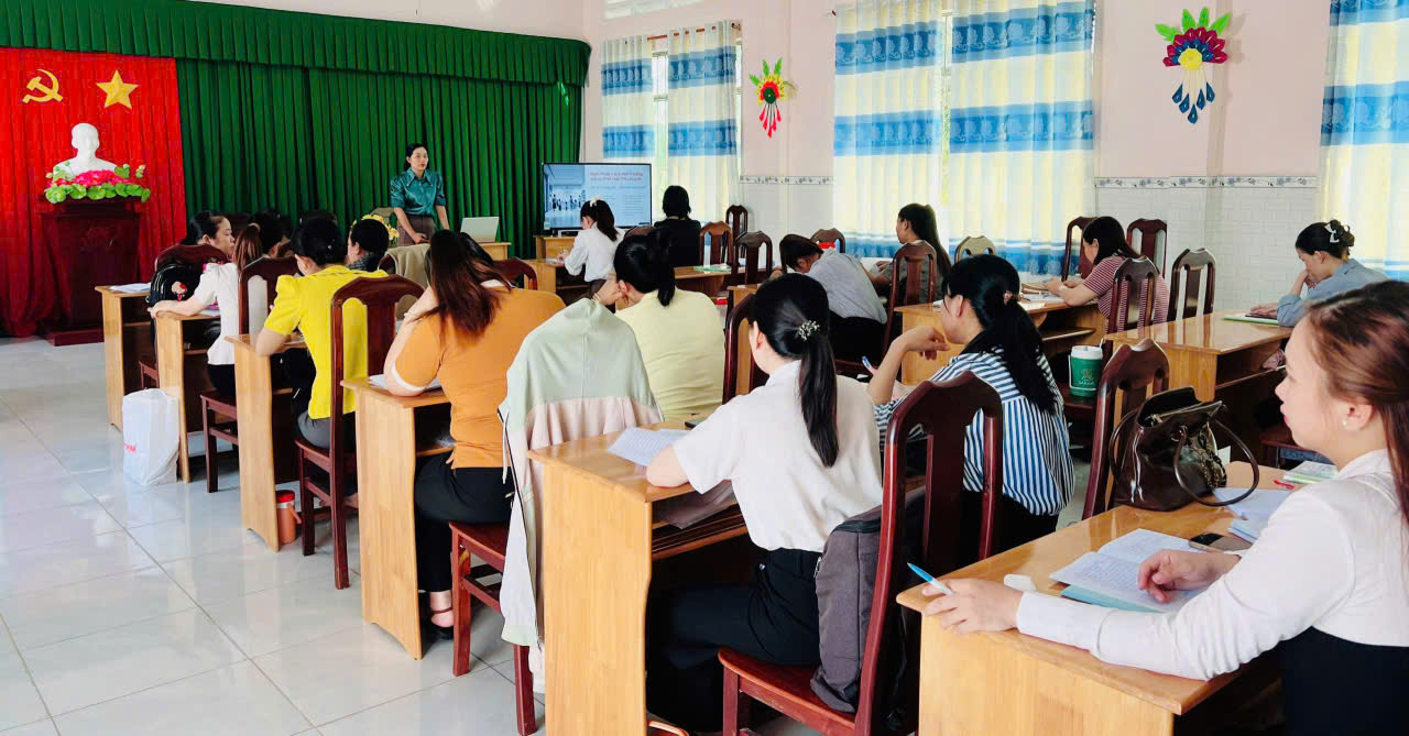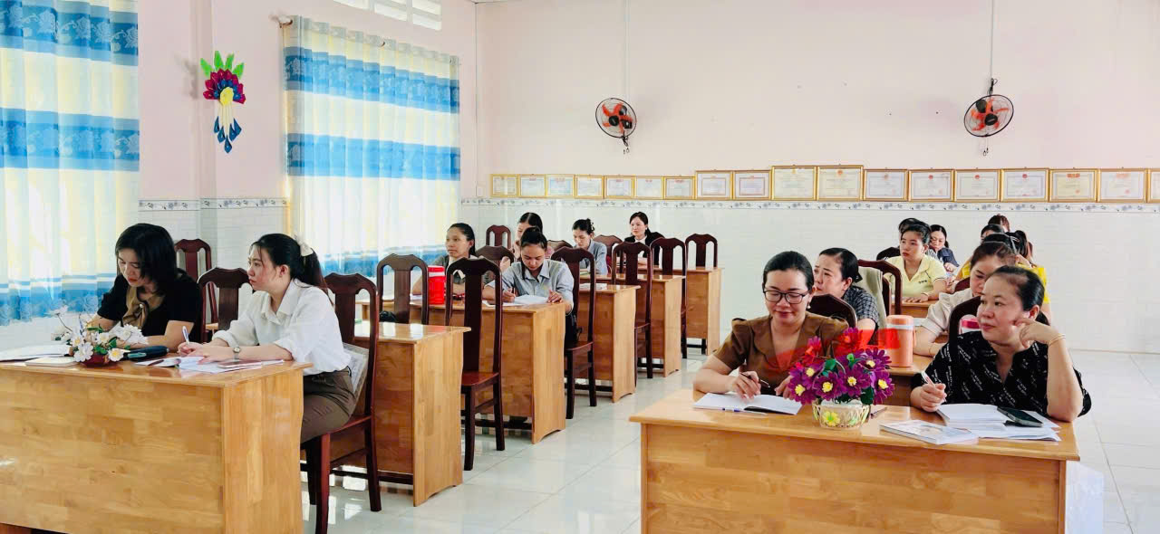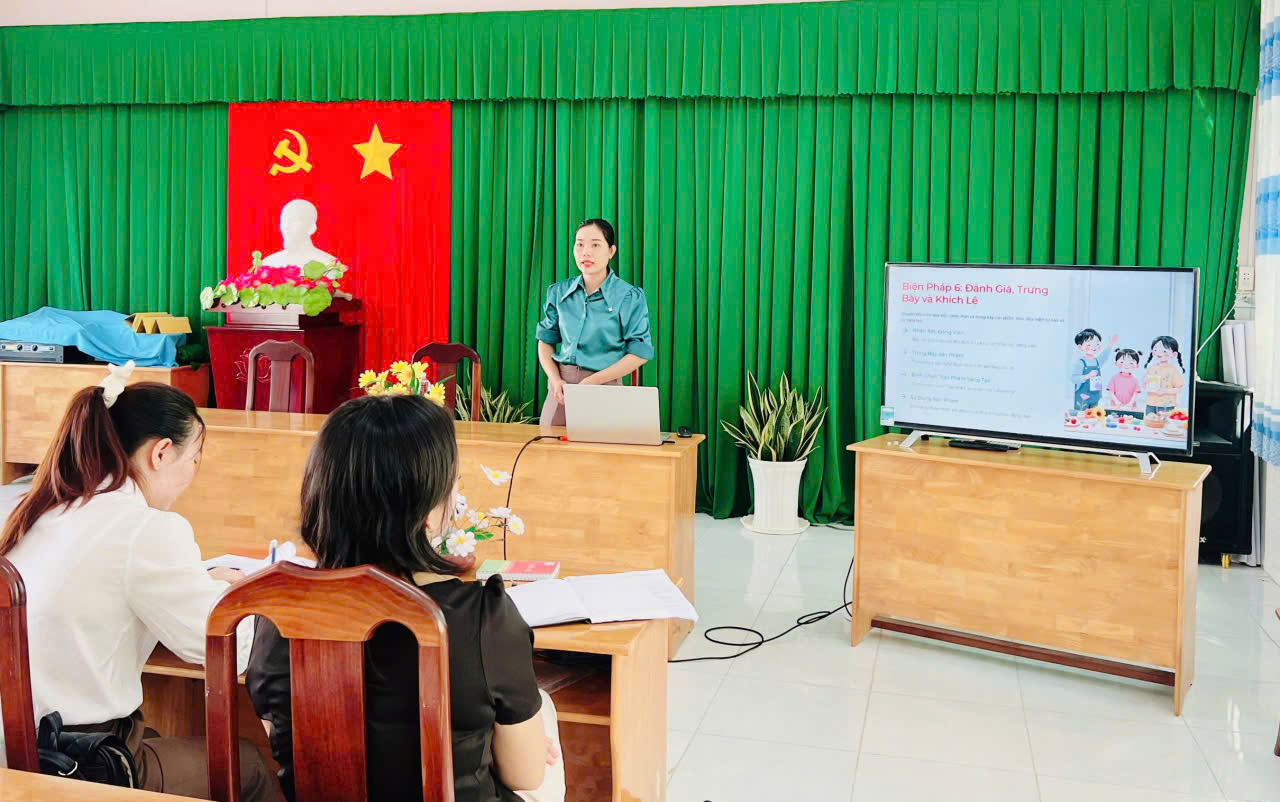 Sáng ngày 11 tháng 10 năm 2025, cô Lê Thị Xuân Hương – Tổ trưởng tổ Mầm - Nhà trẻ, đã báo cáo chuyên đề “Đồ dùng, đồ chơi sáng tạo từ nguyên vật liệu khác nhau”.